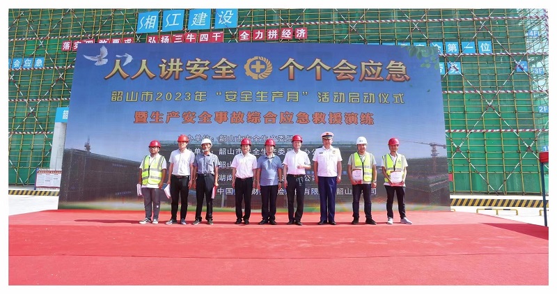 5月29日,韶山市2023年“安全生產月”活動啟動儀式暨生產安全事故綜合應急救援演練活動在湘江公司韶山紅色培訓教育基地一期工程項目工地舉行。韶山市人民政府常務副市長、韶山市安委會副主任賀樹峰、韶山市消..