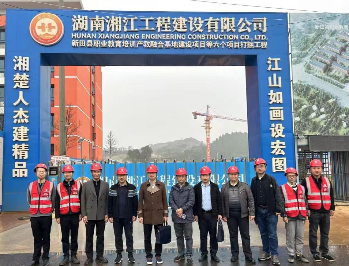 2024年11月25日,湖南省地質院質量大檢查企業(yè)檢查組組長崔小平帶隊到湘江公司新田縣職業(yè)教育培訓產教融合基地建設項目檢查指導項目建設工作,公司副總經理王建平、項目管理部經理劉玨及項目全體管理人員陪同..