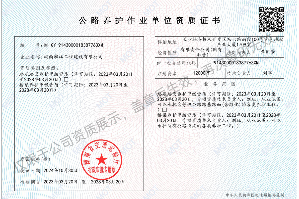 公路養(yǎng)護(hù)資質(zhì)證書(shū)