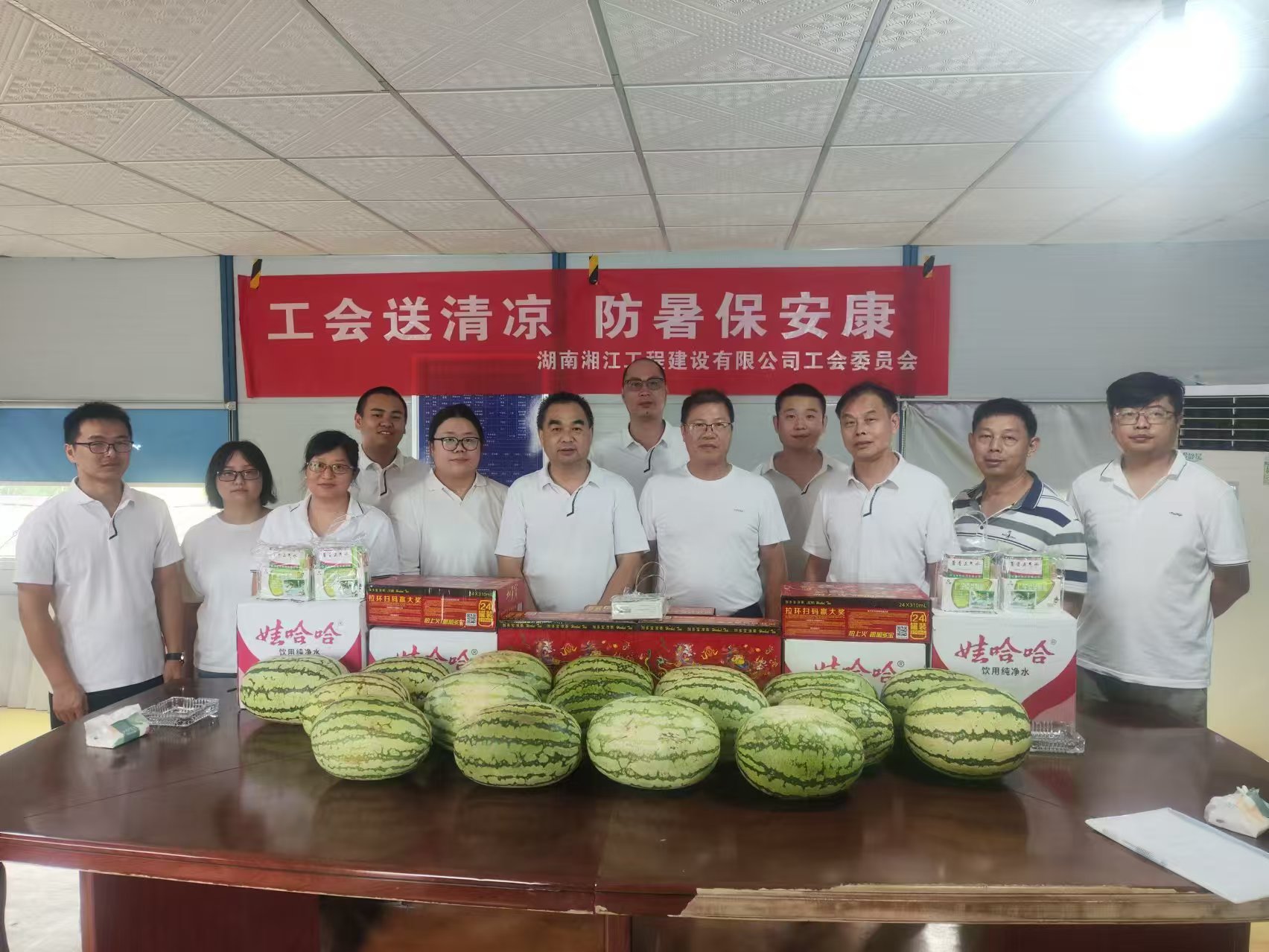 2023年8月4日-8日,湘江公司副總經(jīng)理、工會主席王建平帶隊深入韶山產(chǎn)教融合項目、皇都侗文化風情街一期工程項目及武岡湘居學苑項目一線施工場地,開展“清涼度盛夏 安康伴我行”夏日送清涼活動。..