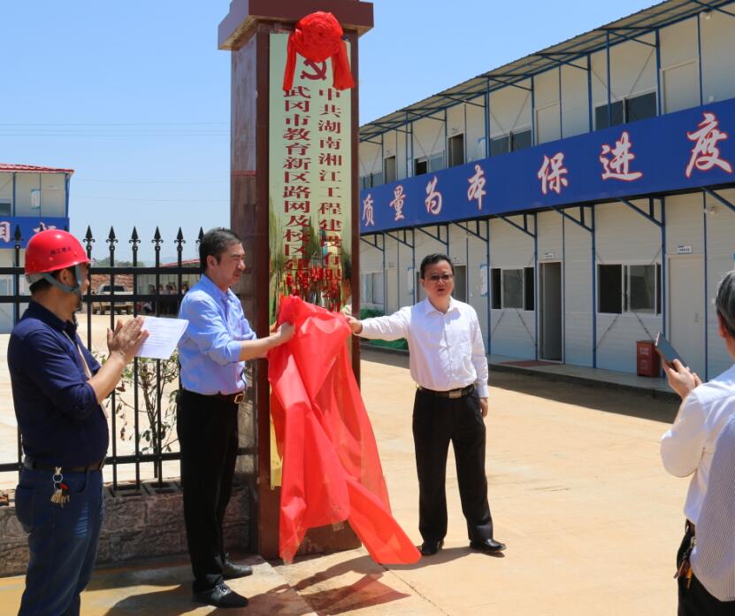 2018年4月18日上午,湘江公司武岡市教新區(qū)路網(wǎng)及校區(qū)建設工程項目黨支部揭牌儀式在項目部隆重舉行,副局長吳宏斌、局黨組成員、副局長王曉敏、局人事處處長胡世明、局直機關黨委專職副書記劉雄以及局調(diào)研組和公司領導應邀出席,項目部全體員工參加儀式。