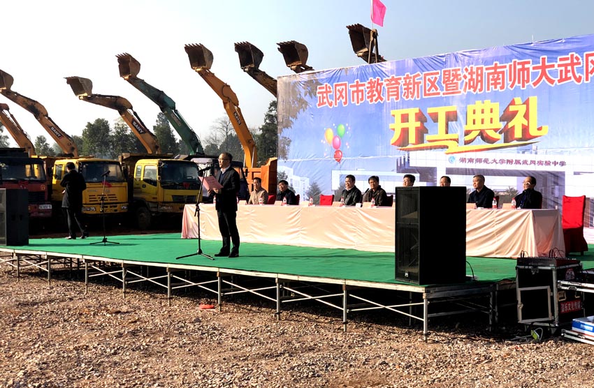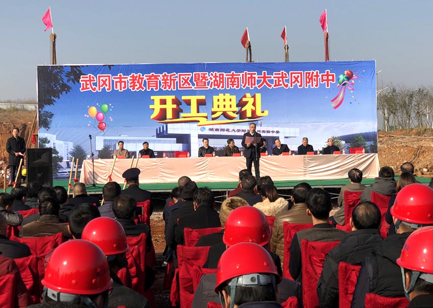 2017年12月19日上午,湖南湘江工程建設有限公司承建的湖南省重點工程、武岡市教育新區暨湖南師大武岡附中校區建設工程項目舉行開工典禮。湖南師大副校長王善平,邵陽市委常委、武岡市委書記侯文、湖南省有色地質勘查局總工程師曹幼元、項目工程建設指揮部指揮長夏建新、湖南湘江工程建設有限公司董事長張賢軍等領導共同為項目奠基。