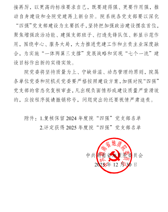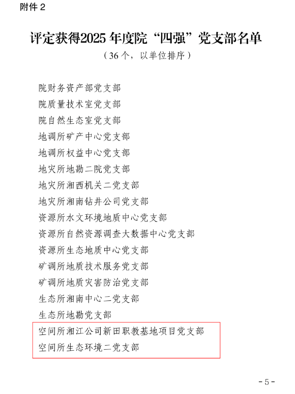 喜報!湖南地質(zhì)空間所多個黨支部獲評“四強(qiáng)”黨支部——湘江公司新田職教基地項目黨支部獲評省地質(zhì)院2025年度“四強(qiáng)”黨支部稱號