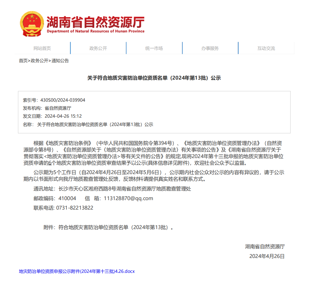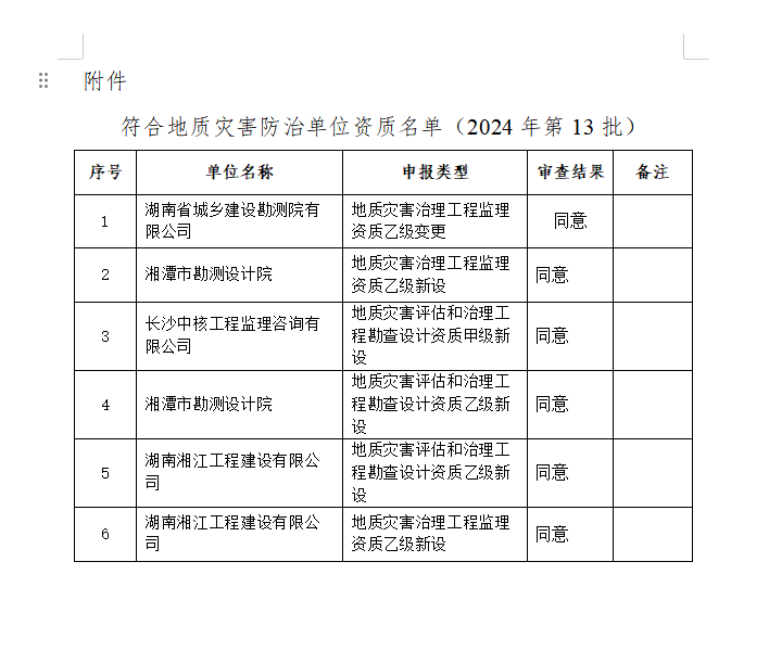 近日,湖南省自然資源廳公布了“關(guān)于符合地質(zhì)災(zāi)害防治單位資質(zhì)名單(2024年第13批)公示”,經(jīng)資料審核、現(xiàn)場核實(shí)、專家評審,湘江公司順利取得地質(zhì)災(zāi)害評估和治理工程勘查設(shè)計(jì)、地質(zhì)災(zāi)害治理工程監(jiān)理兩項(xiàng)乙級新設(shè)資質(zhì)。在現(xiàn)有地質(zhì)災(zāi)害防治治理施工甲級的基礎(chǔ)上延伸了公司地災(zāi)資質(zhì)產(chǎn)業(yè)鏈,為地災(zāi)業(yè)務(wù)開拓和多元化發(fā)展,以及向地質(zhì)主業(yè)轉(zhuǎn)型奠定了堅(jiān)實(shí)基礎(chǔ)。