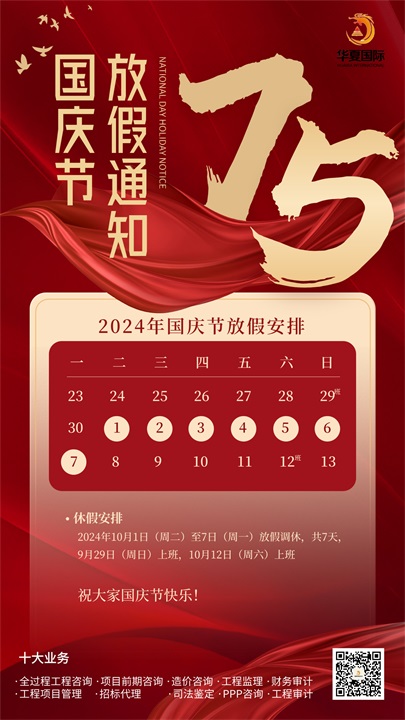 【放假通知】華夏國際項目管理有限公司放假通知